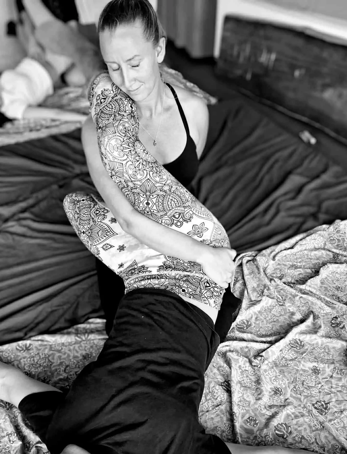 The work incorporates jiggling, rocking, pulsating, and gentle movement, supporting the nervous system to soften, surrender, and find ease. Each session is a tender, grounding experience honouring the miraculous unfolding of your body and the life within.